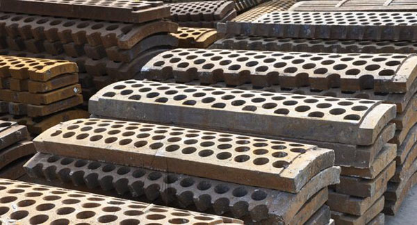 篦板主要应用在锤式破碎机、磨机等设备中,由于该种破碎机属于冲击式破碎形式,因此,破碎机篦板在与物料的冲击碰撞中易折断,因此鼎成在蓖板开发中采用高锰钢等材质,大大增强其韧性和耐磨性。
